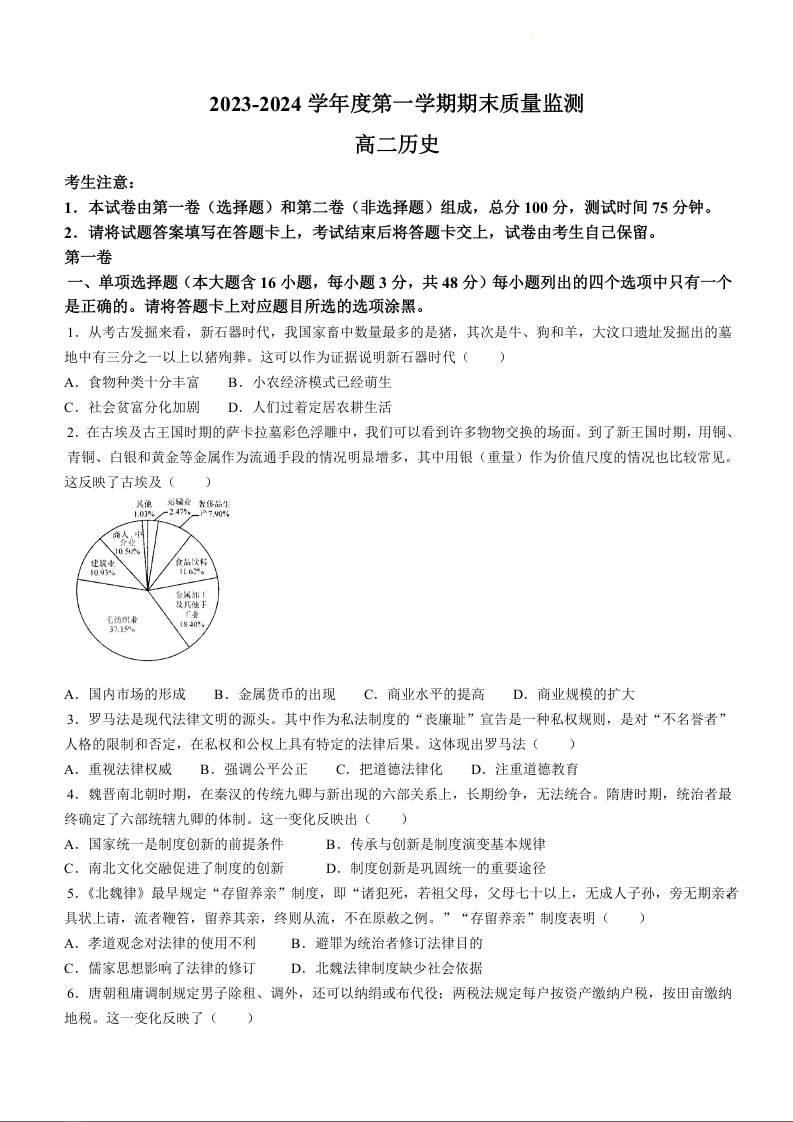 广东省茂名市电白区2023-2024学年高二上学期期末质量监测历史+答案