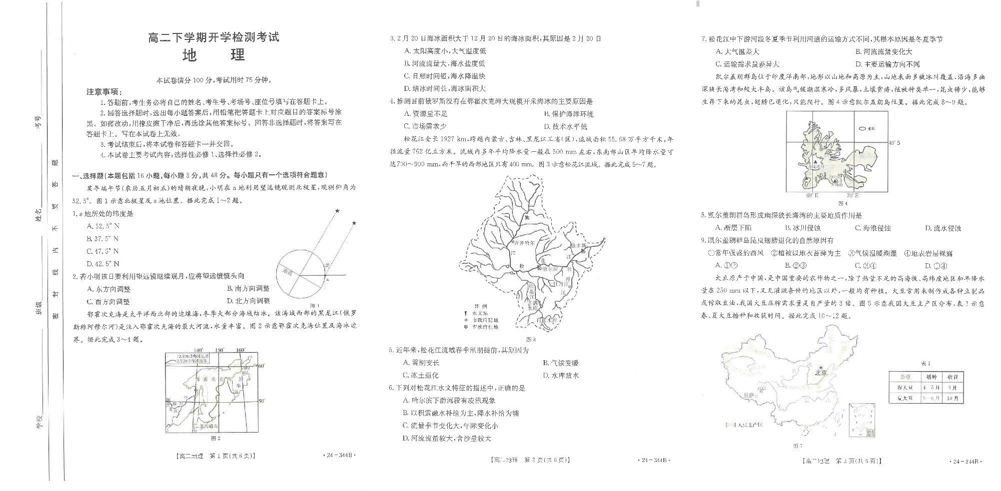 河北省保定市部分高中2023-2024学年高二下学期开学检测考试地理
