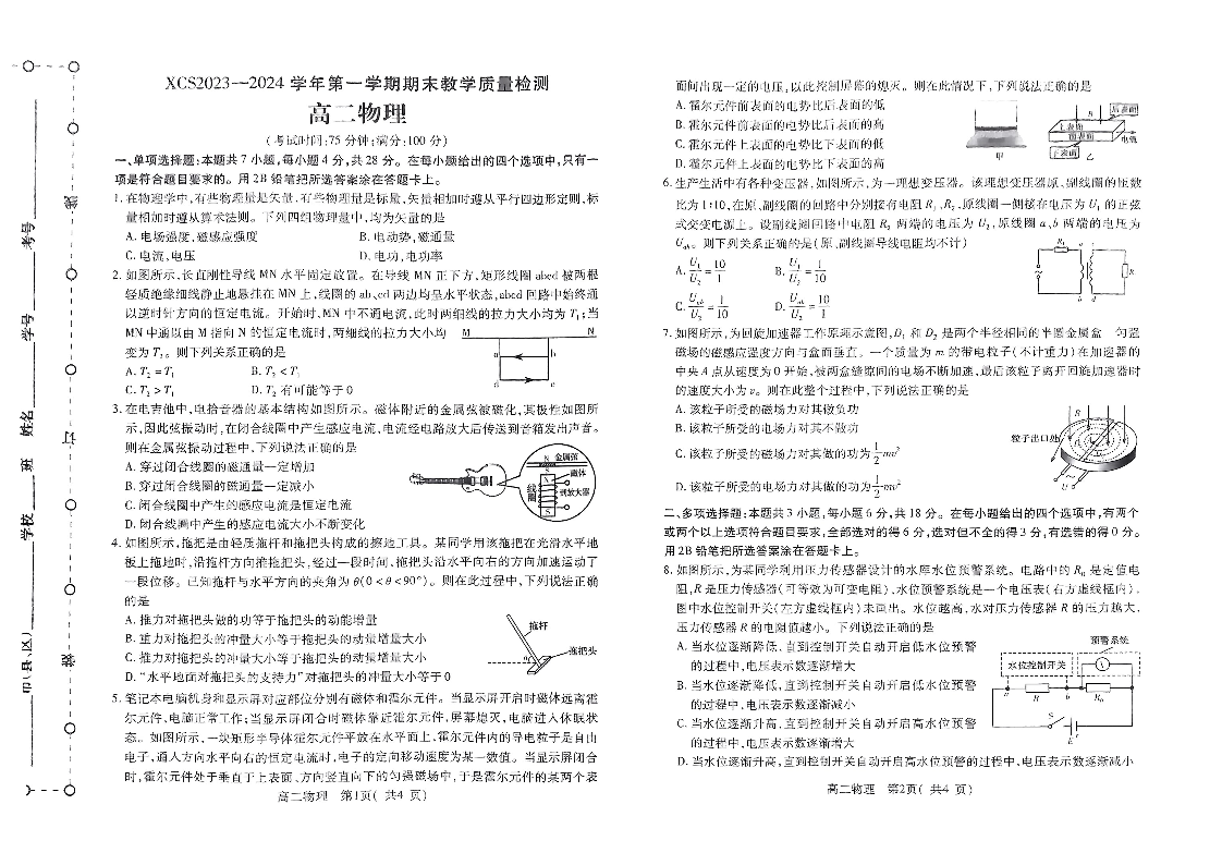 河南省许昌市2023-2024学年高二上学期期末考试物理
