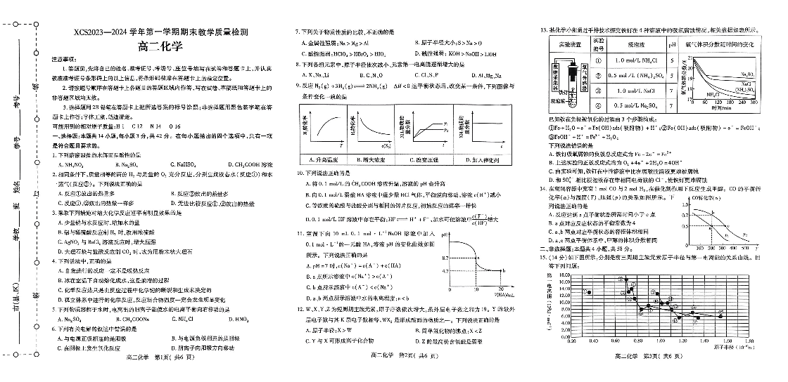 河南省许昌市2023-2024学年高二上学期期末考试化学