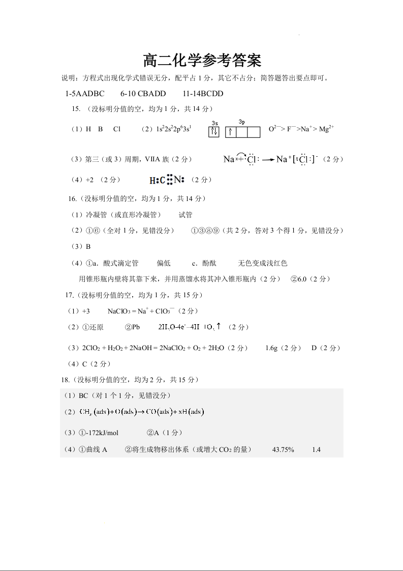 河南省许昌市2023-2024学年高二上学期期末考试化学答案