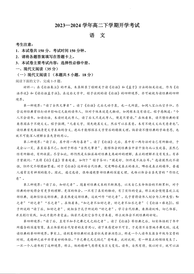 河南省许平汝名校2023-2024学年高二下学期开学考试语文+答案