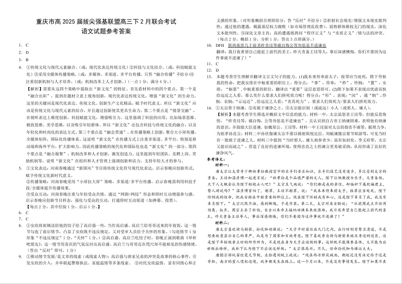 重庆市西南大学附中拔尖强基联盟2024-2025学年下学期2月高三考试语文答案