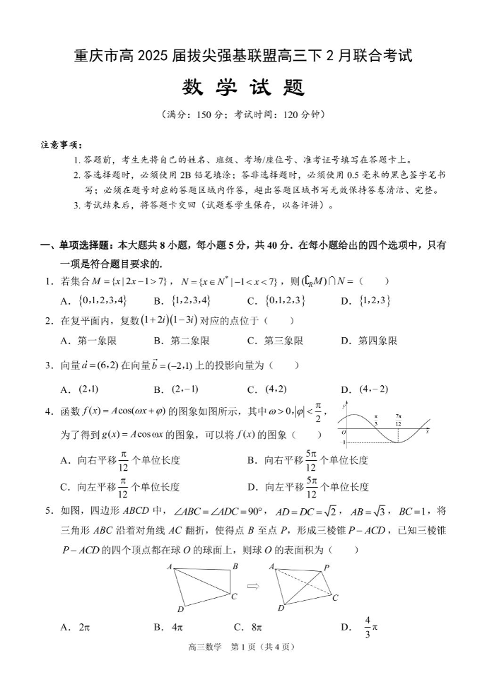 重庆市西南大学附中拔尖强基联盟2024-2025学年下学期2月高三考试数学
