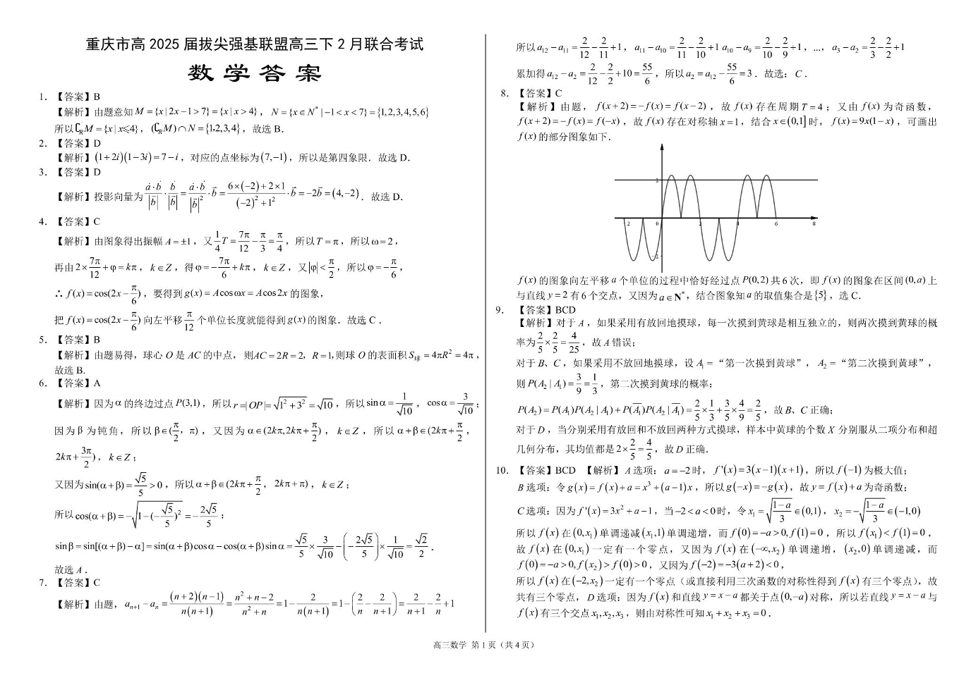 重庆市西南大学附中拔尖强基联盟2024-2025学年下学期2月高三考试数学答案