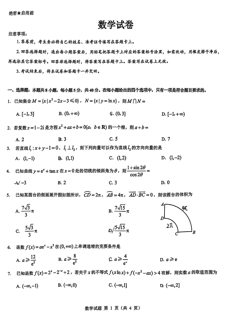 山西省区域高中2024-2025学年下学期2月高三开学联考数学+答案