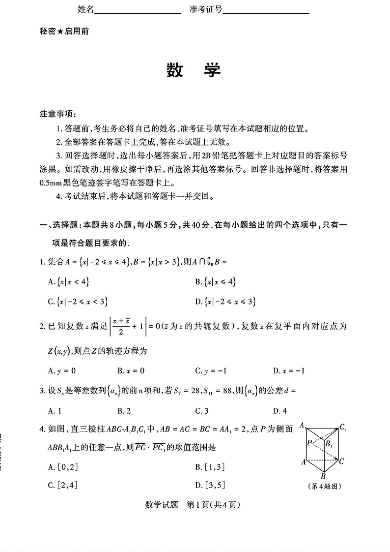 山西省2024-2025学年下学期高三考前适应性测试启航卷(一模)数学+答案