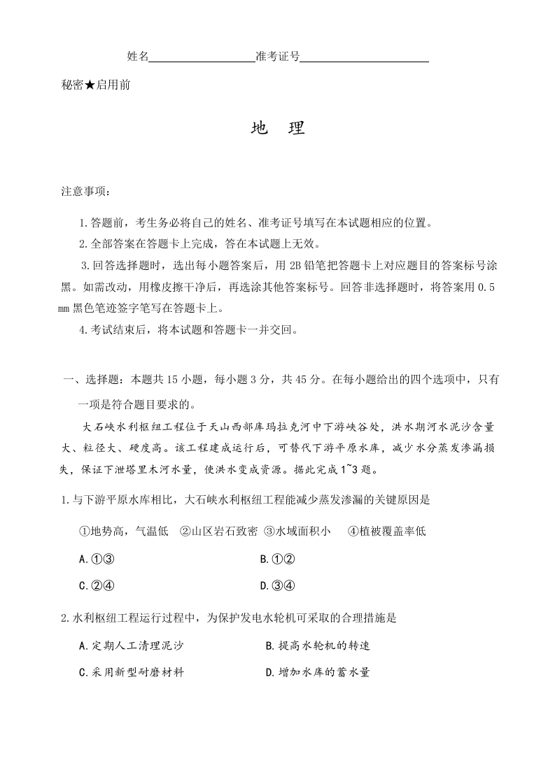 山西省2024-2025学年下学期高三考前适应性测试启航卷(一模)地理+答案