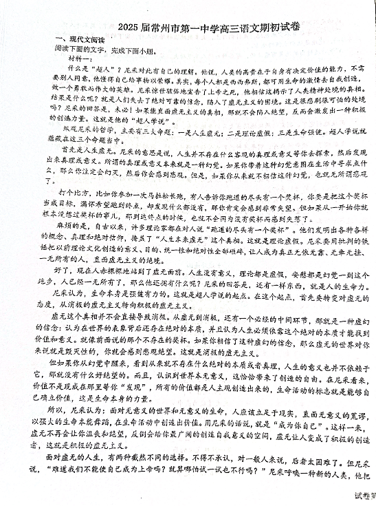 江苏省常州一中2024-2025学年下学期高三期初质量调研语文+答案