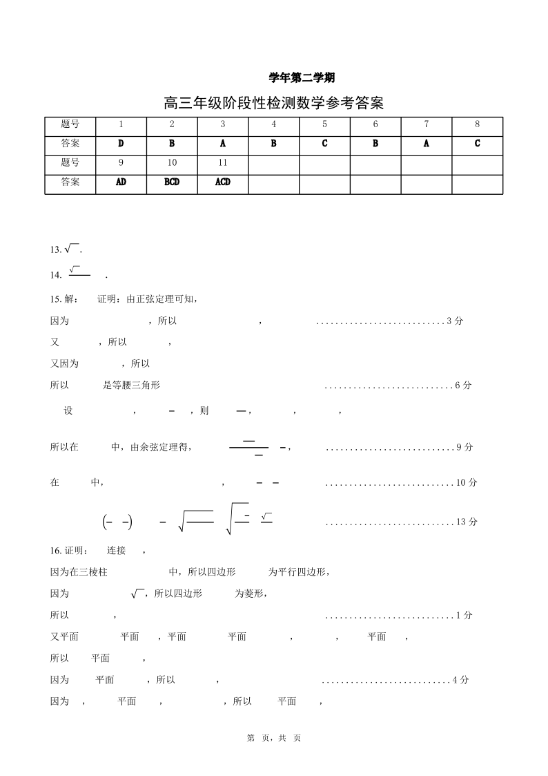 安徽省合肥市六校联盟2024-2025学年下学期高三阶段性检测数学答案