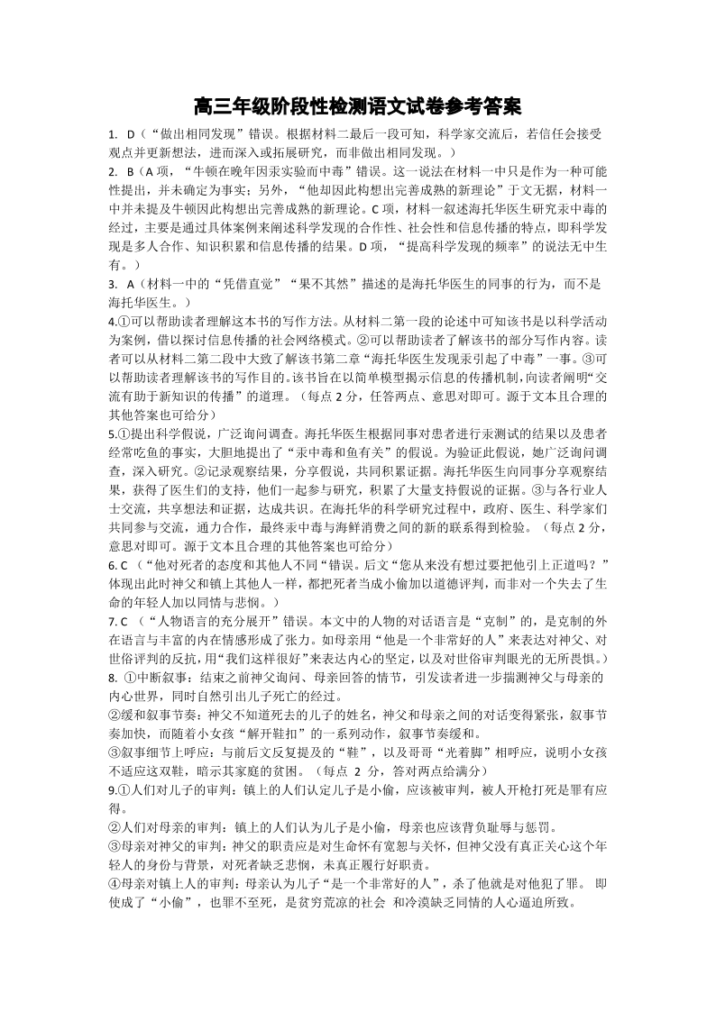 安徽省合肥市六校联盟2024-2025学年下学期高三阶段性检测语文答案