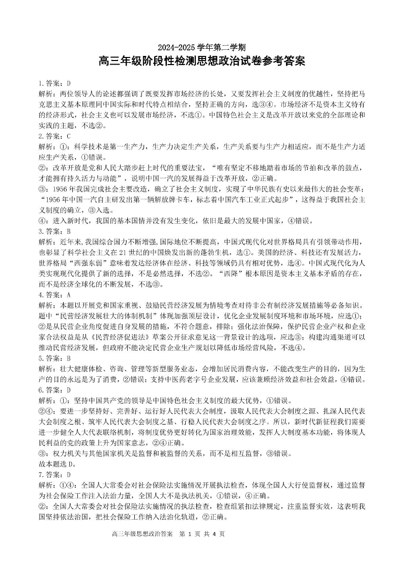 安徽省合肥市六校联盟2024-2025学年下学期高三阶段性检测政治答案