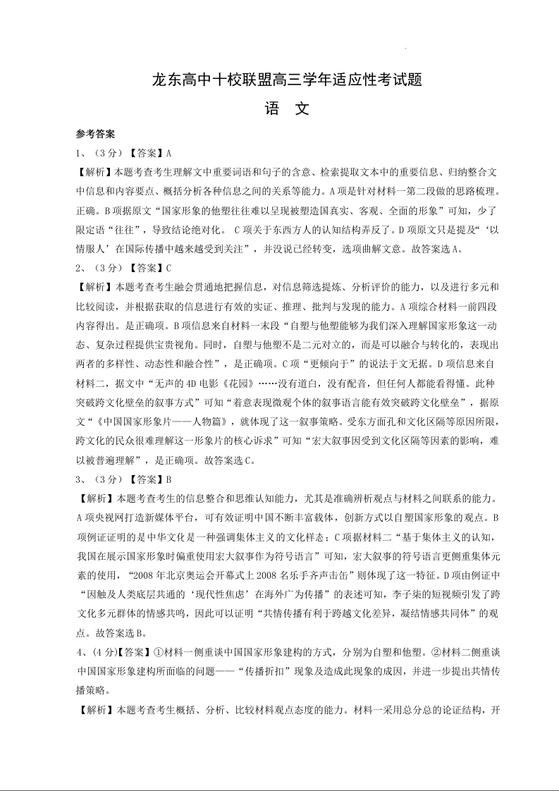 黑龙江省龙东十校联盟2024-2025学年下学期2月高三适应性考试语文答案