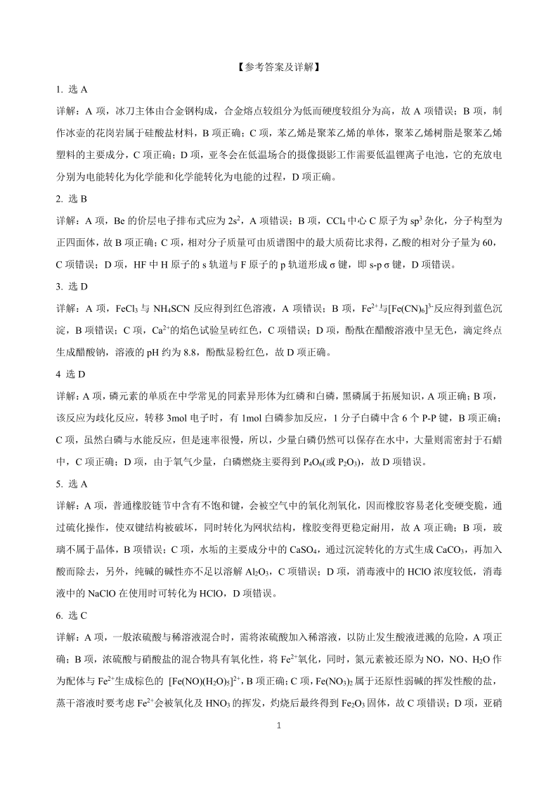 黑龙江省龙东十校联盟2024-2025学年下学期2月高三适应性考试化学答案
