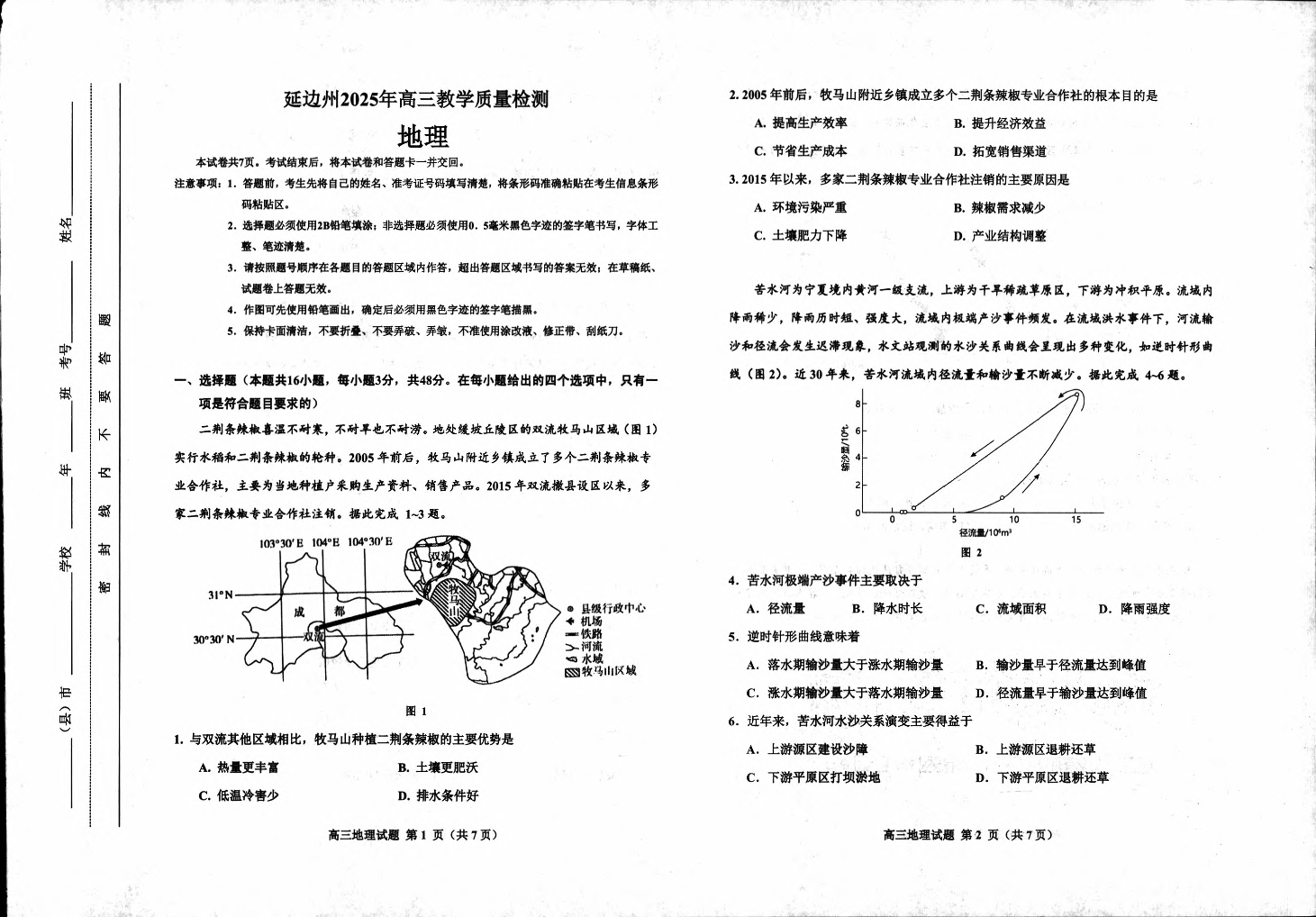 吉林省延边州2024-2025学年下学期2月高三教学质量检测地理