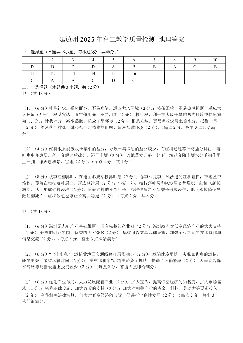吉林省延边州2024-2025学年下学期2月高三教学质量检测地理答案
