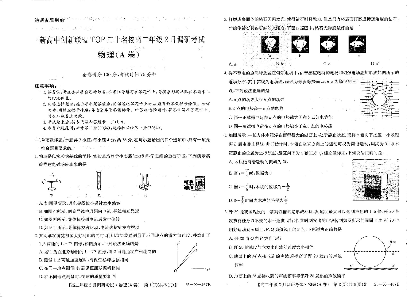 河南省TOP二十名校2024-2025学年下学期2月高二调研考试物理