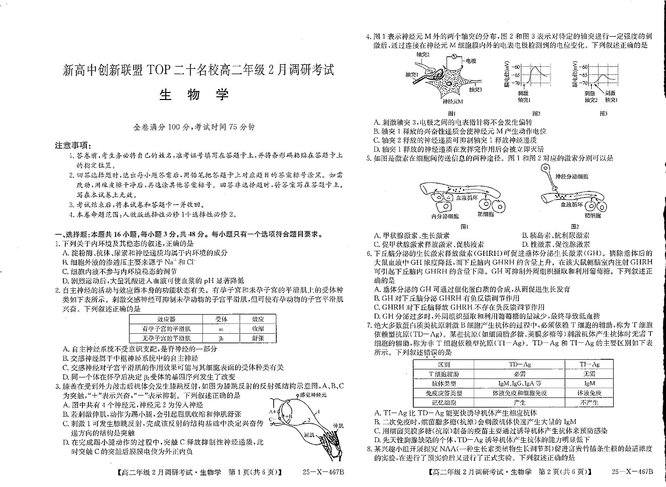 河南省TOP二十名校2024-2025学年下学期2月高二调研考试生物