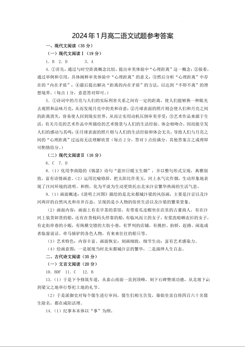 山东省青岛市莱西市2023-2024学年高二上学期1月期末考试语文答案