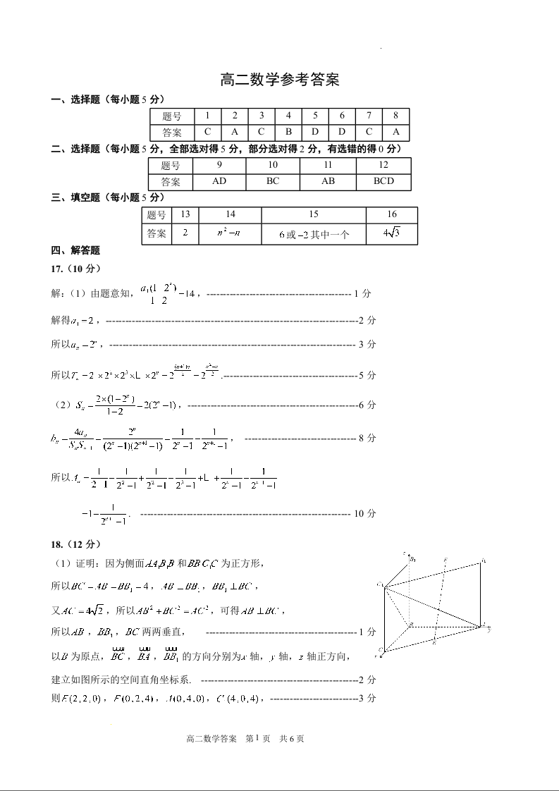 山东省威海市2023-2024学年高二上学期期末考试数学答案