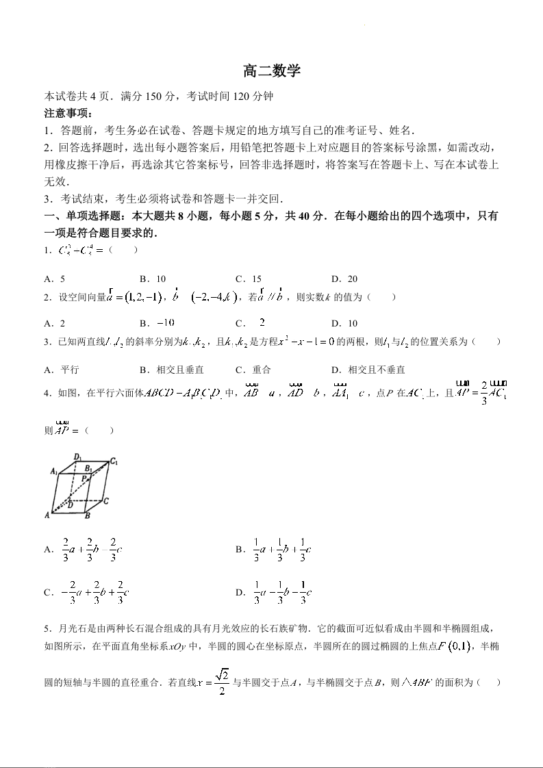 山东省潍坊市2023-2024学年高二上学期1月期末考试数学+答案