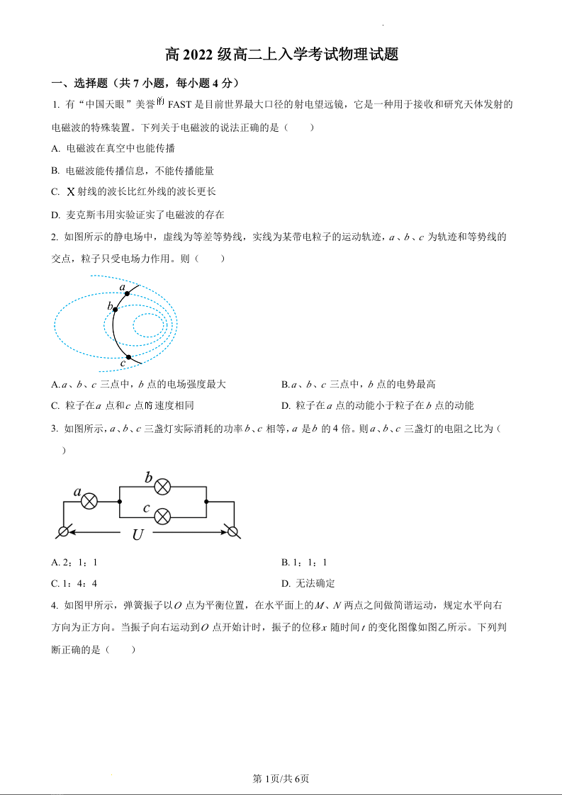 重庆市万州二中教育集团2023-2024学年高二下学期入学质量监测物理(原卷版)