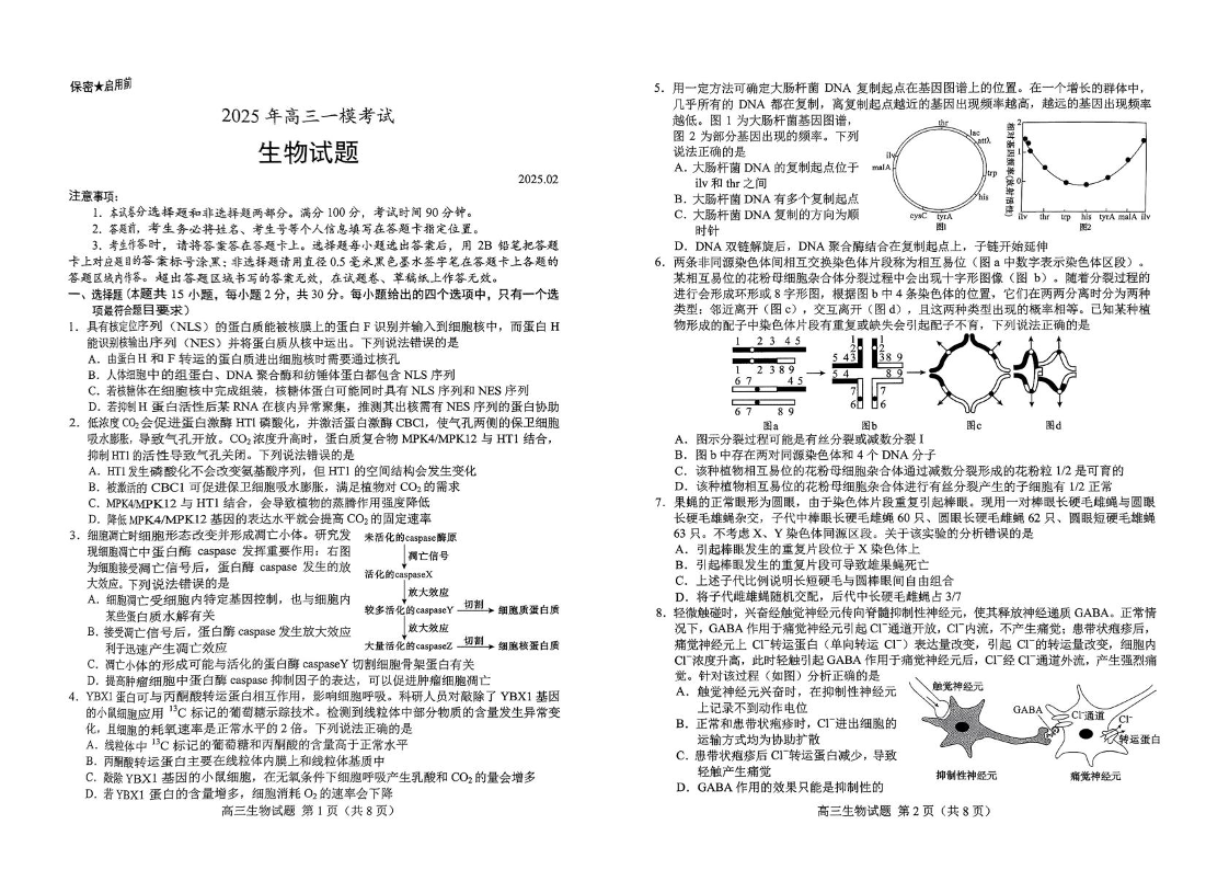 山东省菏泽市2024-2025学年高三第一次模拟考试生物