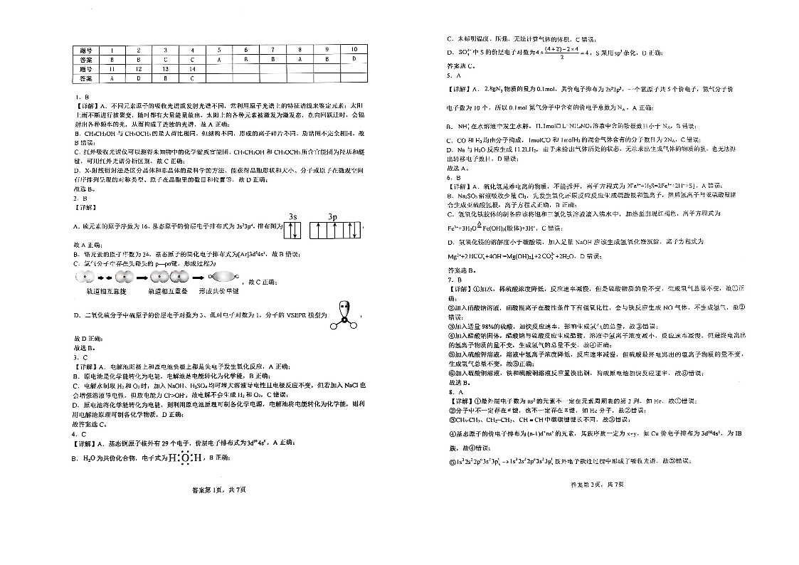 重庆市巴蜀中学2024-2025学年下学期高二开学考试化学答案