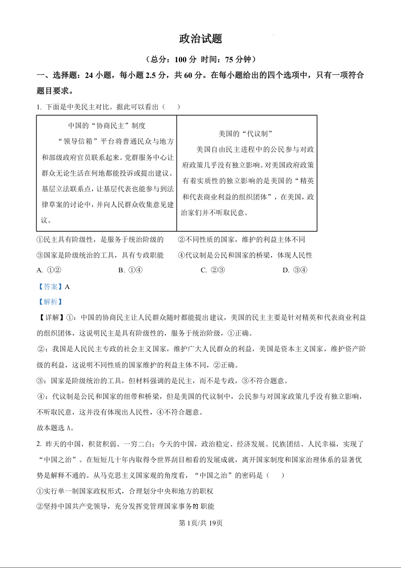 重庆市巴蜀中学2024-2025学年下学期高二开学考试政治(精品解析版)