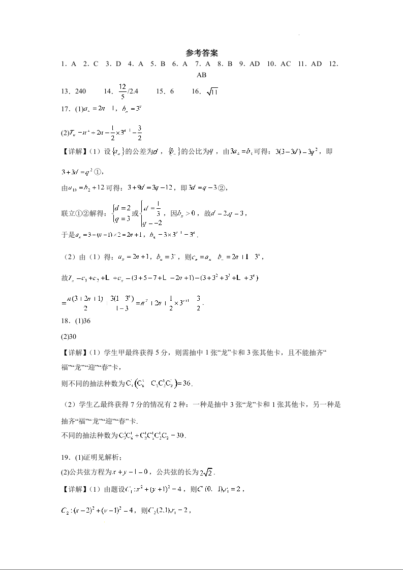 甘肃省武威市凉州区2023-2024学年高二下学期开校质量检测数学答案
