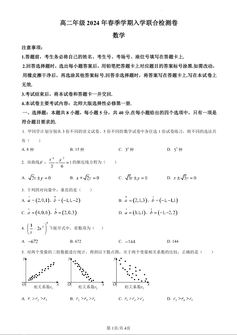 广西壮族自治区桂林市联考2023-2024学年高二下学期开学考试数学(原卷版)