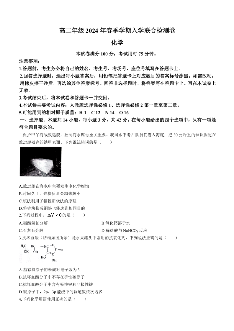 广西壮族自治区桂林市联考2023-2024学年高二下学期开学考试化学