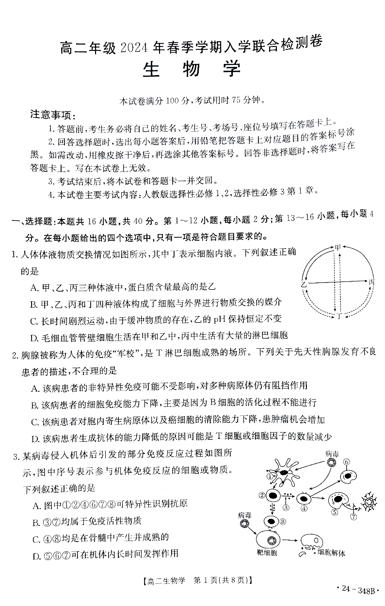广西壮族自治区桂林市联考2023-2024学年高二下学期开学考试生物