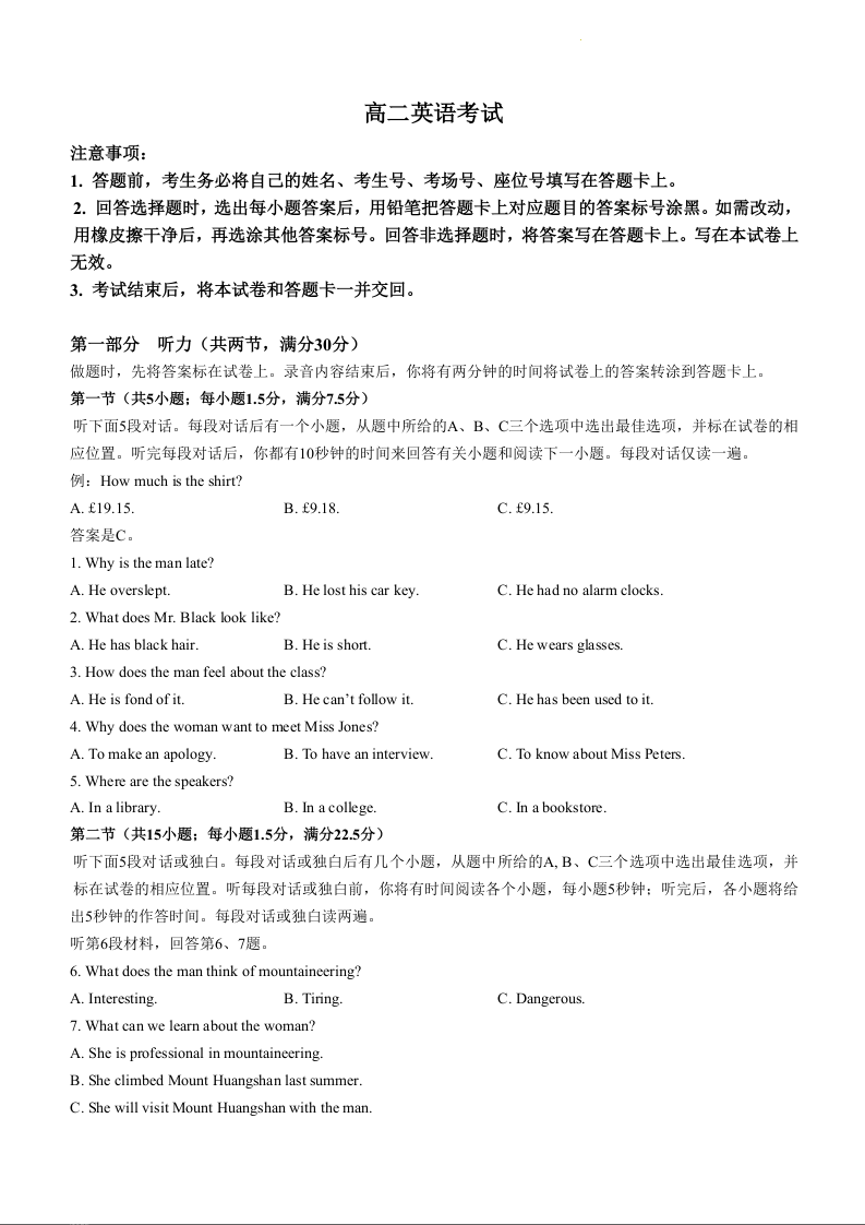河北省保定市部分高中2023-2024学年高二下学期3月月考英语+答案