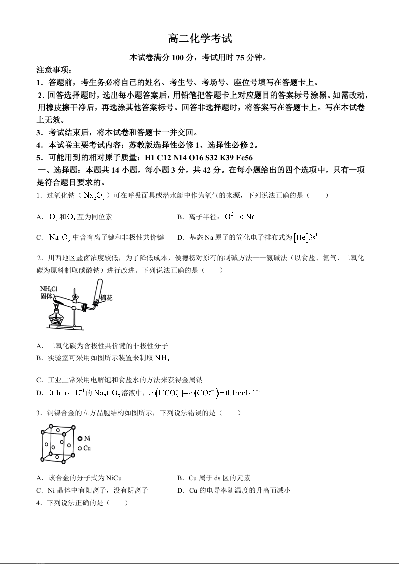 河北省保定市部分高中2023-2024学年高二下学期3月月考化学+答案