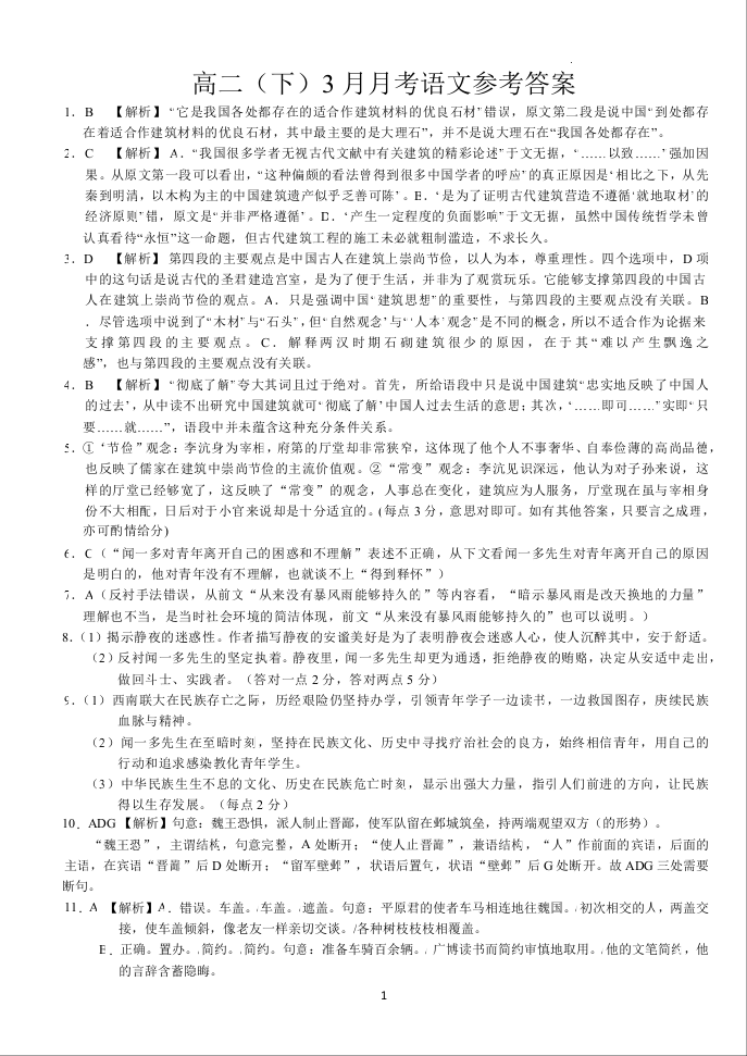 湖北省沙市中学2023-2024学年高二下学期3月月考语文答案