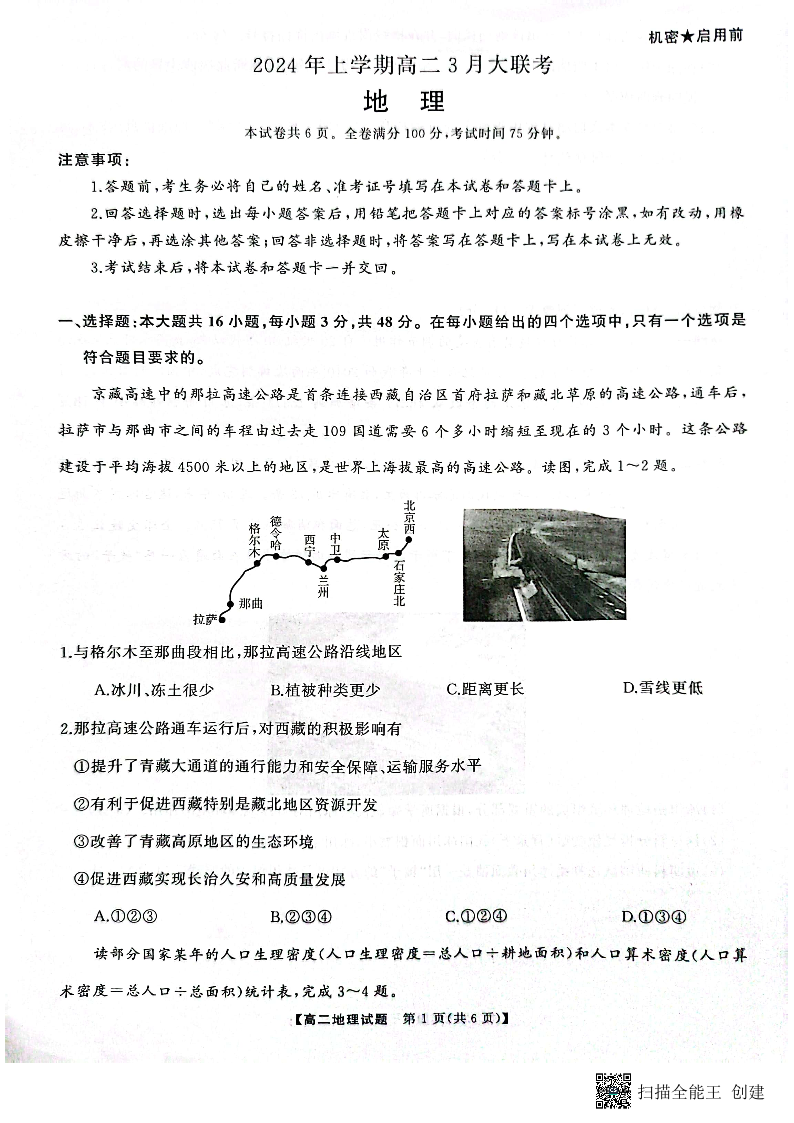 湖南省天壹名校联盟2023-2024学年高二下学期3月月考地理