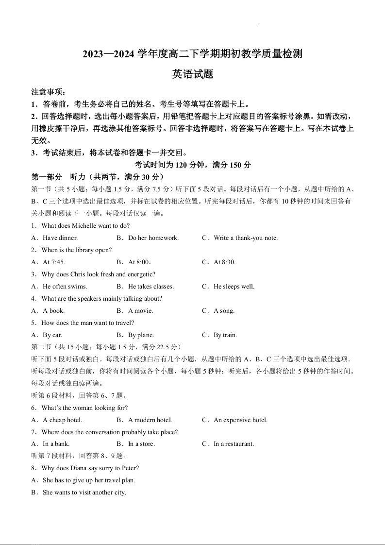 辽宁省2023-2024学年高二下学期开学考试英语+答案