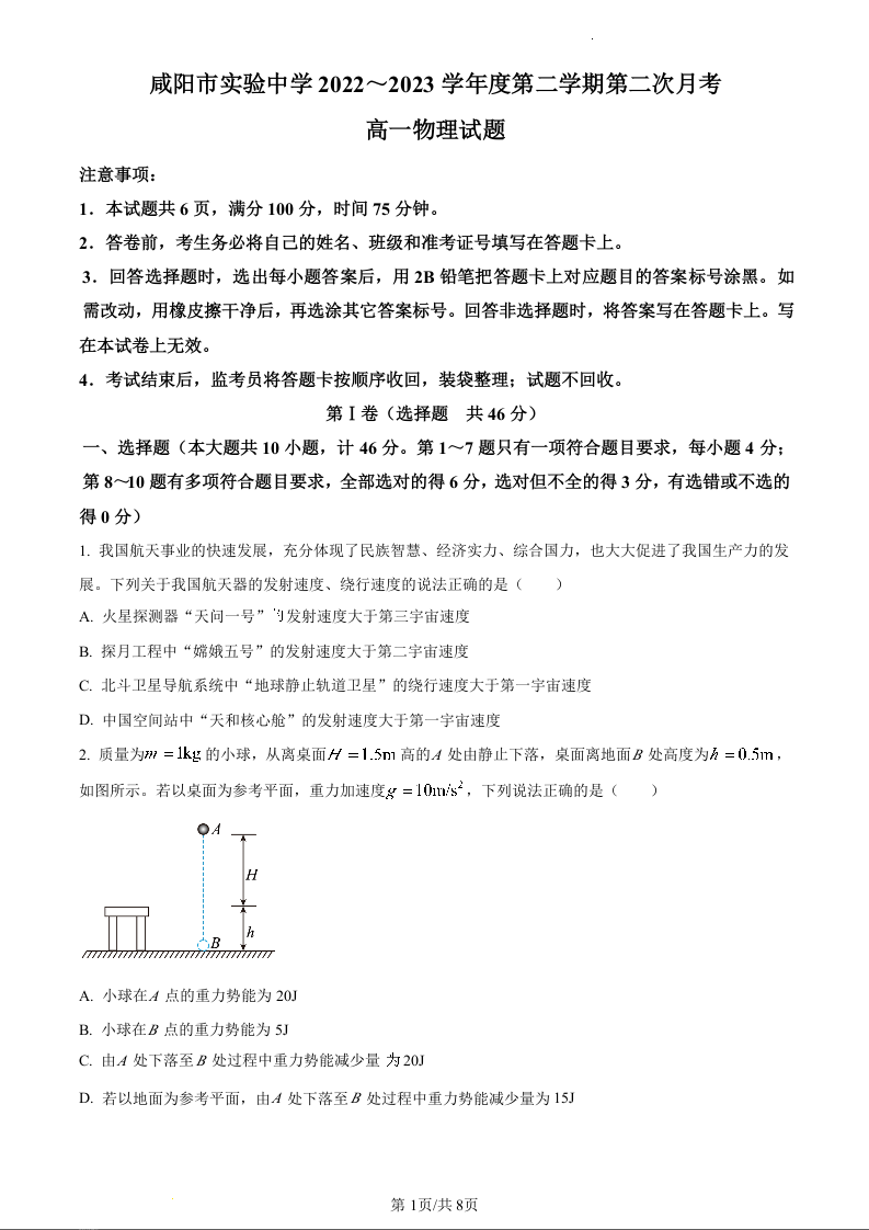 陕西省咸阳市实验中学2022-2023学年高二下学期第二次月考物理(原卷版)