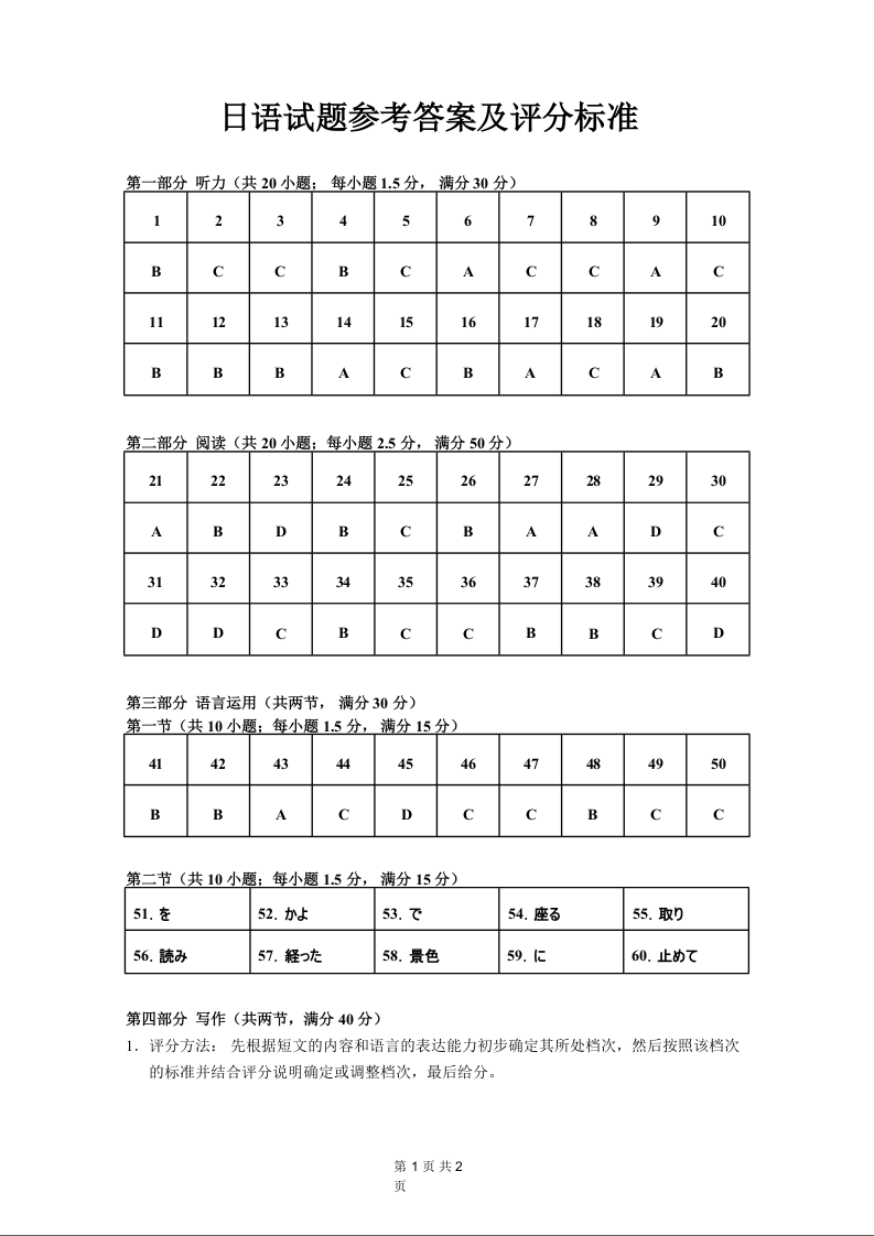 江苏省新高考基地学校2024-2025下学期期初高三质量监测日语答案