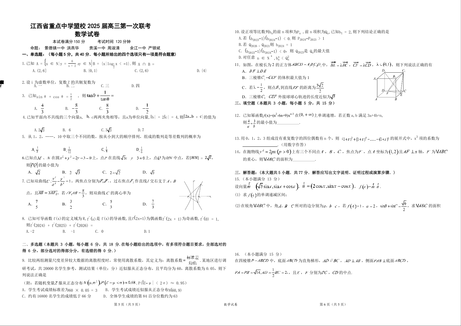 江西省重点中学盟校2024-2025学年下学期高三第一次联考数学+答案