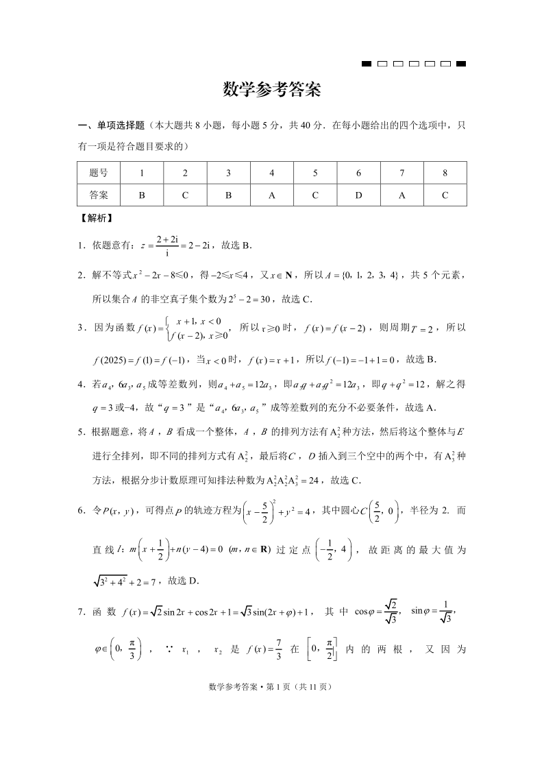 重庆市第八中学2024-202学年高三高考适应性月考卷(五)数学答案