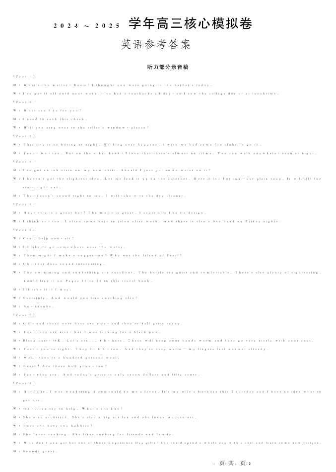 湖北省黄冈市2024-2025学年下学期2月高三核心模拟英语答案