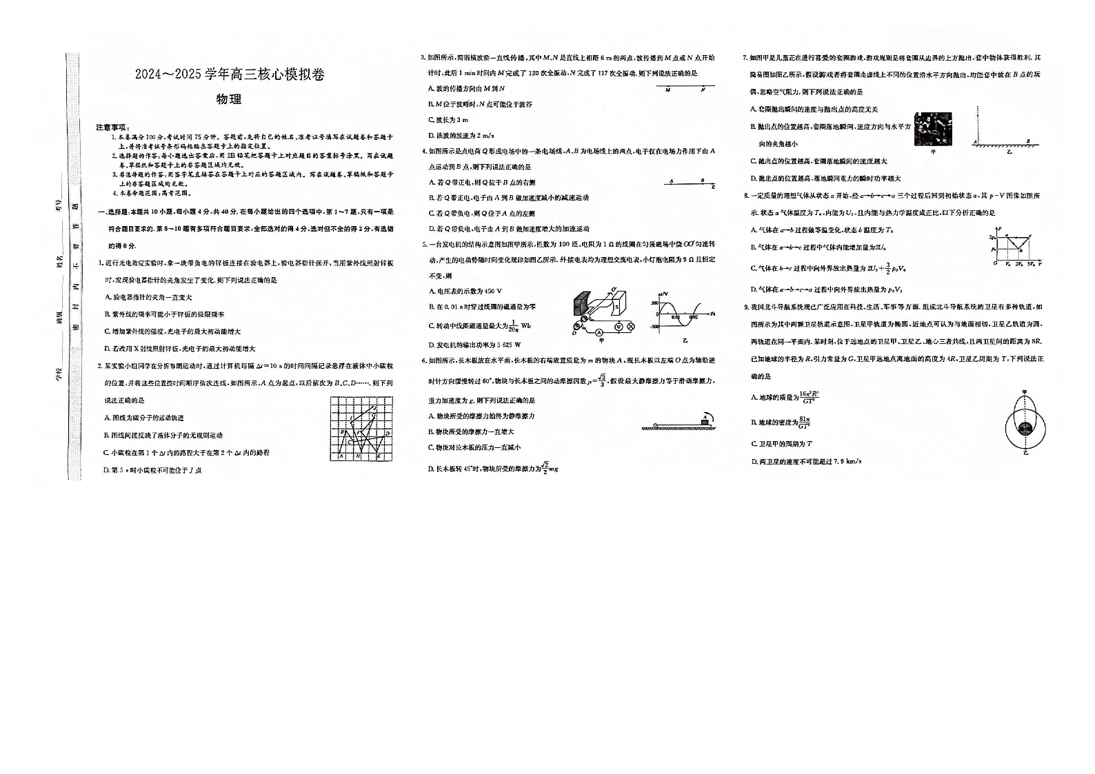 湖北省黄冈市2024-2025学年下学期2月高三核心模拟物理