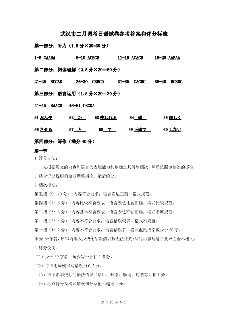 湖北省武汉市2024-2025学年下学期高中毕业生二月调研考试日语答案