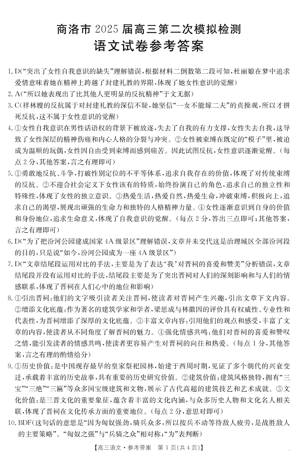 陕西省商洛市2024-2025学年下学期2月高三第二次模拟考试语文答案
