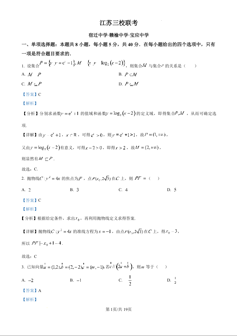江苏省宿迁中学等三校2024-2025学年下学期高三联考数学(精品解析版)