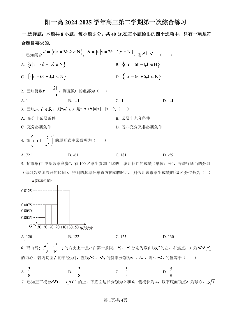 河南省洛阳市一中2024-2025学年下学期高三第一次综合练习数学(原卷版)