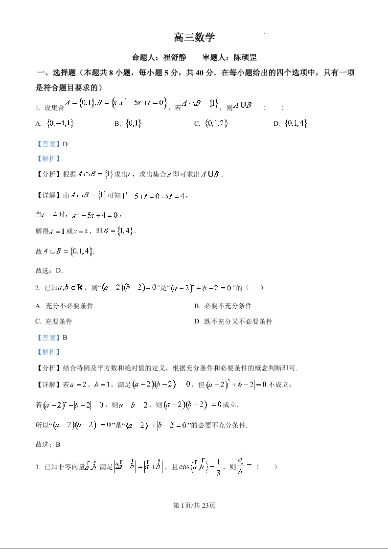 浙江省杭州学军中学2024-2025学年下学期2月高三月考数学(精品解析版)