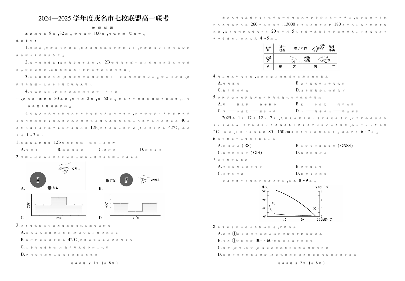 广东省茂名市七校2024-2025学年下学期2月高一月考地理